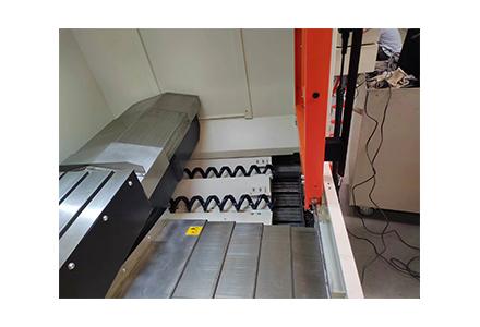 8) 在床身兩側(cè)內(nèi)嵌螺旋排屑槽,標(biāo)配鏈板式排屑器,采用前排屑結(jié)構(gòu),合理有效利用機(jī)床空間,操作方便。